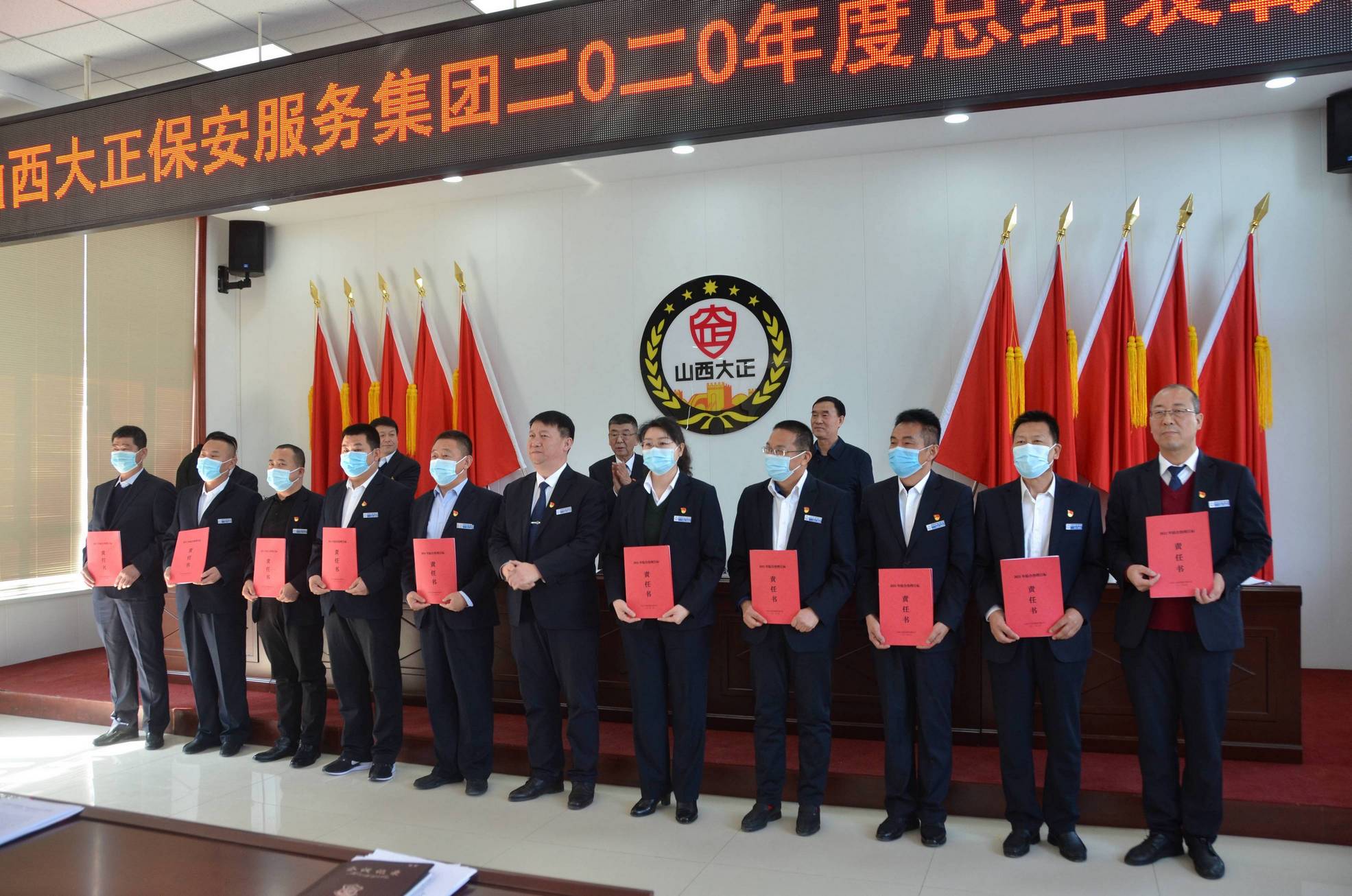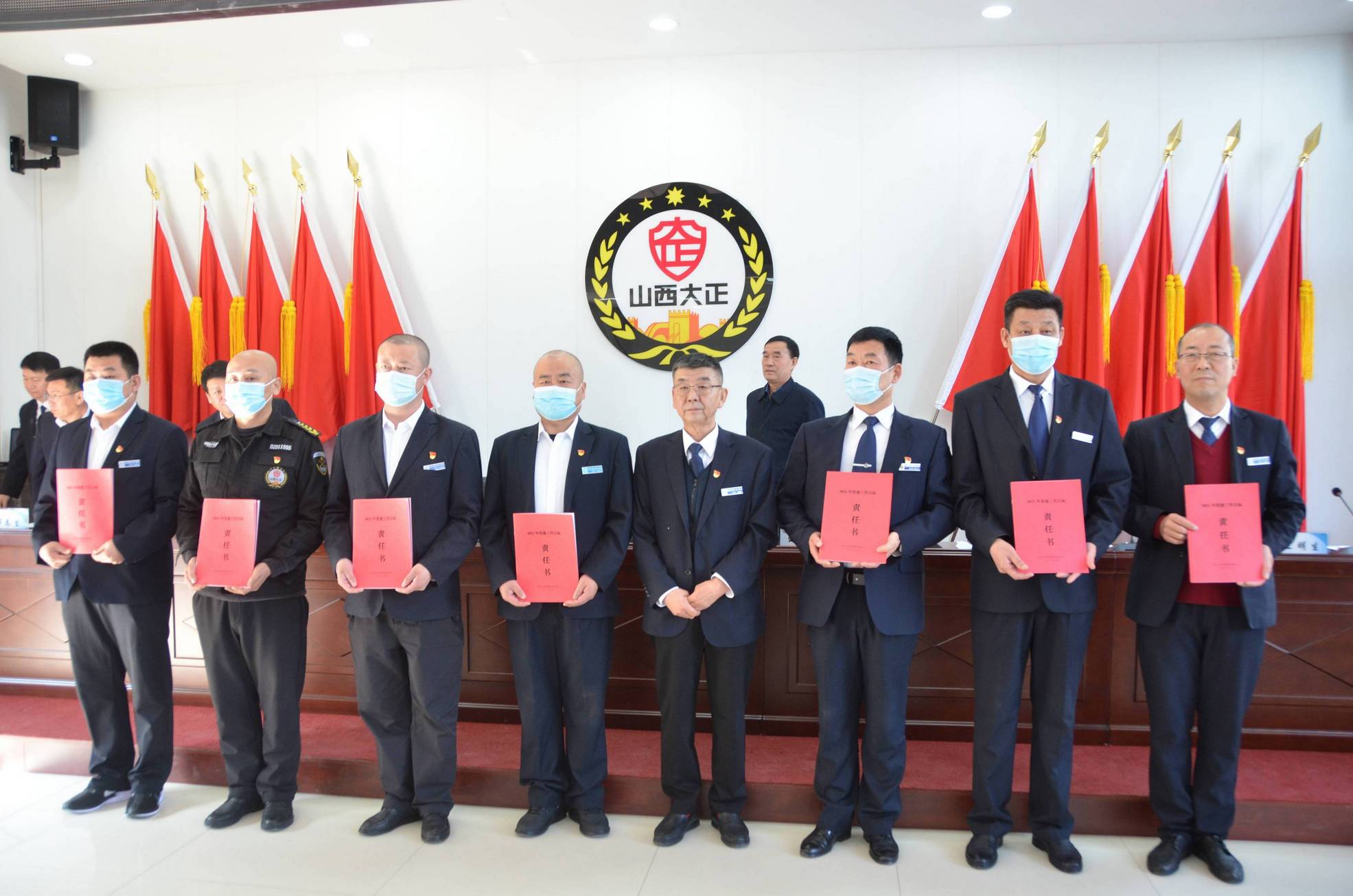 會上,黨委書記、董事長張躍生向公司各子公司、各部門、各黨支部負(fù)責(zé)人頒發(fā)了黨建目標(biāo)責(zé)任書、黨風(fēng)廉潔目標(biāo)責(zé)任書,黨委副書記、總經(jīng)理趙培宏向公司各子公司、各部門負(fù)責(zé)人頒發(fā)綜合治理目標(biāo)責(zé)任書、安全生產(chǎn)目標(biāo)責(zé)任書。大會在《大正保安之歌》歌聲中圓滿落幕。