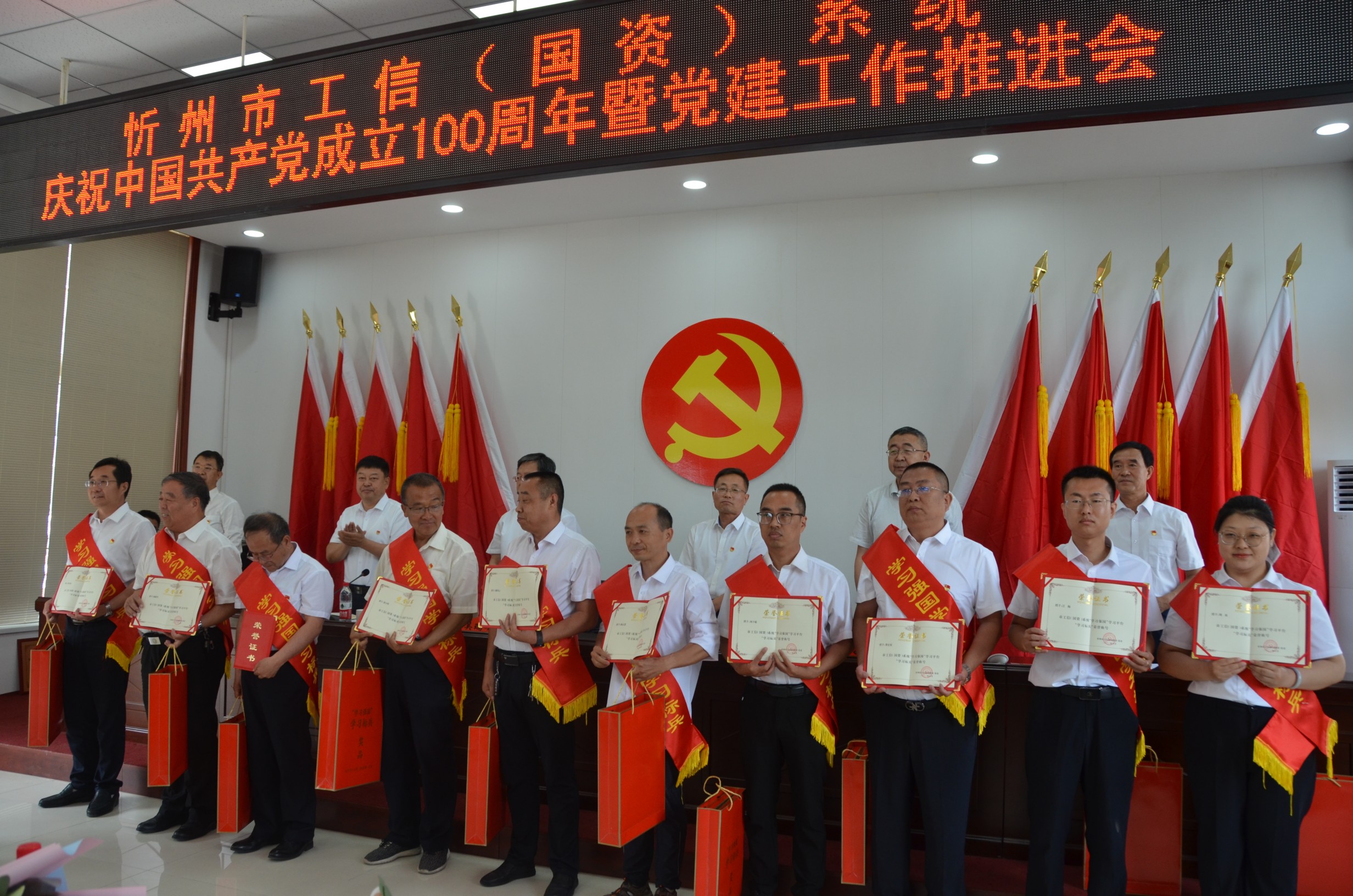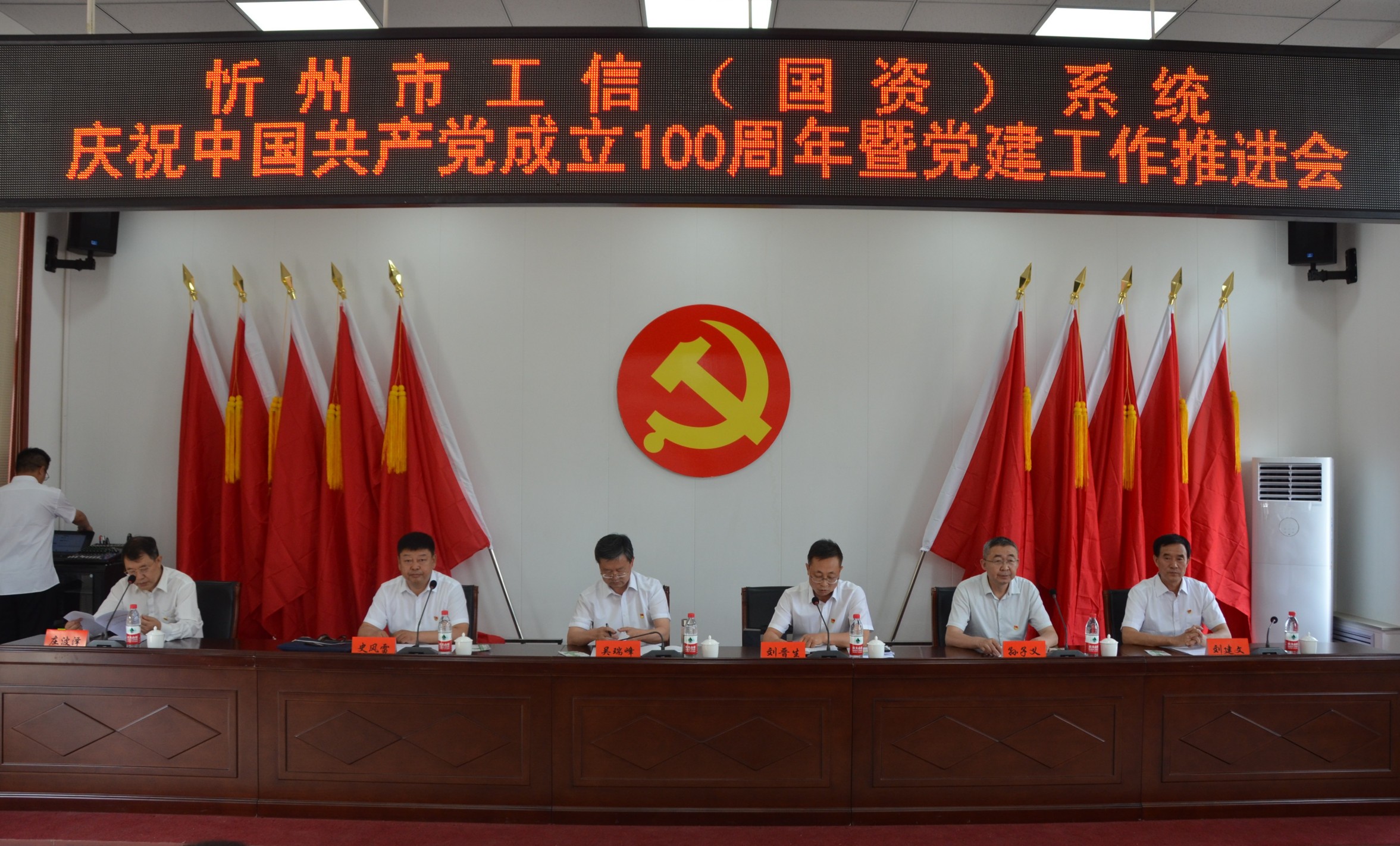 6月29日上午,忻州市工信(國(guó)資)系統(tǒng)召開(kāi)慶祝中國(guó)共產(chǎn)黨成立100周年暨黨建工作推進(jìn)會(huì)在山西大正保安服務(wù)集團(tuán)有限公司總部會(huì)議室召開(kāi)。忻州市工業(yè)和信息化局黨委書(shū)記、局長(zhǎng)吳瑞峰等班子成員出席會(huì)議,各監(jiān)管企業(yè)黨委書(shū)記、市工信局全體黨員、新黨員代表、獲獎(jiǎng)人員參會(huì)。會(huì)議由局黨委專職副書(shū)記劉晉生主持。大正保安集團(tuán)公司黨委副書(shū)記趙培宏、陳志平等黨員代表參會(huì)。