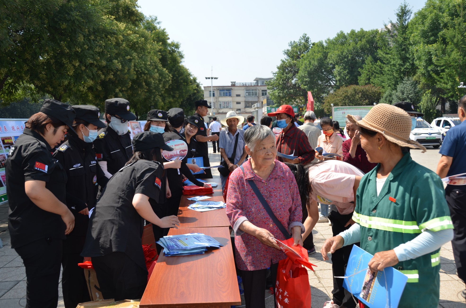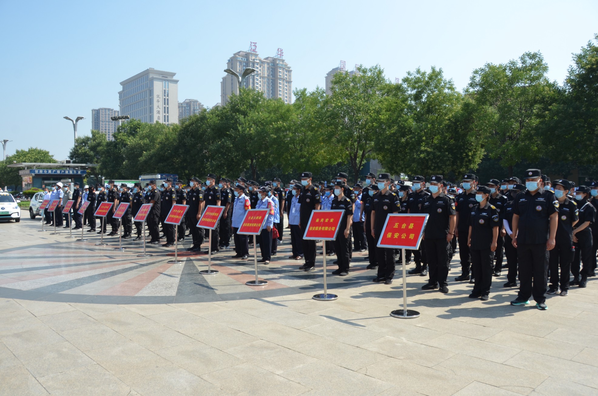 7月24日上午10時,我公司員工在忻州市體育廣場與各市縣保安公司員工200余人開展以“喜迎二十大,保安護(hù)平安”為主題的保安行業(yè)主題宣傳日活動。此次活動由忻州市公安局治安管理支隊(duì)負(fù)責(zé)人張志鵬主持,忻州市公安局黨委委員、副局長楊德華、忻州市保安協(xié)會領(lǐng)導(dǎo)出席。