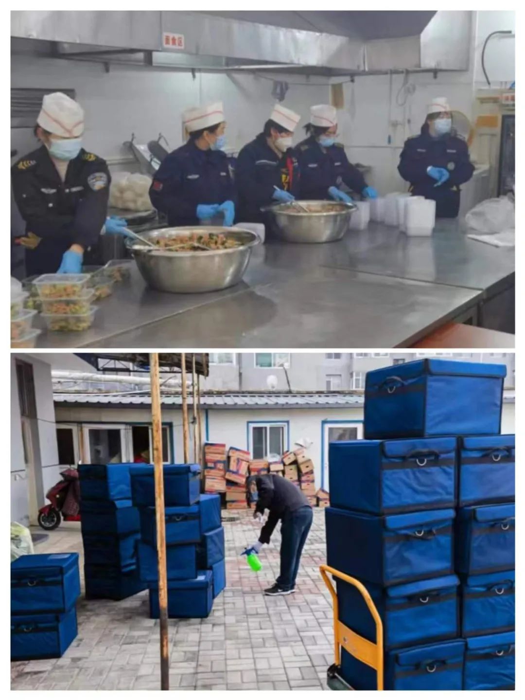忻州師院東校區(qū)隔離點(diǎn)正式啟用后,寇星云、郭二平分別帶領(lǐng)以守押公司、億通公司人員為主組建的工作區(qū)、隔離區(qū)兩支黨員突擊分隊(duì)進(jìn)駐相應(yīng)區(qū)域,以機(jī)關(guān)和守押監(jiān)控中心、物業(yè)公司、刻章公司、億通公司、文化藝術(shù)公司等單位人員組建的其它三支黨員突擊分隊(duì)在外負(fù)責(zé)保障餐食、物資供應(yīng)。餐食物資保障分隊(duì)隊(duì)員既要克服重重困難采購所需食材和生活物資、合理搭配菜譜,又要在保溫、包裝等方面想辦法、下功夫,盡量根據(jù)隔離人員不同口味做到差異化安排搭配,保證葷素搭配、營養(yǎng)均衡,盡最大程度滿足隔離人員每日的營養(yǎng)需求。預(yù)備應(yīng)急分隊(duì)隊(duì)員往往身兼數(shù)職,哪里需要到哪里,一會(huì)幫忙搬運(yùn)物資,一會(huì)幫忙分裝水果、面包、餅干等輔食,忙的馬不停蹄。餐食物資運(yùn)輸隊(duì)員根據(jù)實(shí)際,科學(xué)合理調(diào)配車輛和路線,保證將餐食、生活物資按時(shí)送達(dá)。在隔離點(diǎn)一線的工作區(qū)、隔離區(qū)隊(duì)員,在做好餐食、物資配送的基礎(chǔ)上,積極協(xié)調(diào)解決隔離人員的合理訴求,讓隔離點(diǎn)如家般溫暖常在,做到了隔離人員、工作人員、隔離點(diǎn)領(lǐng)導(dǎo)組“三滿意”。
