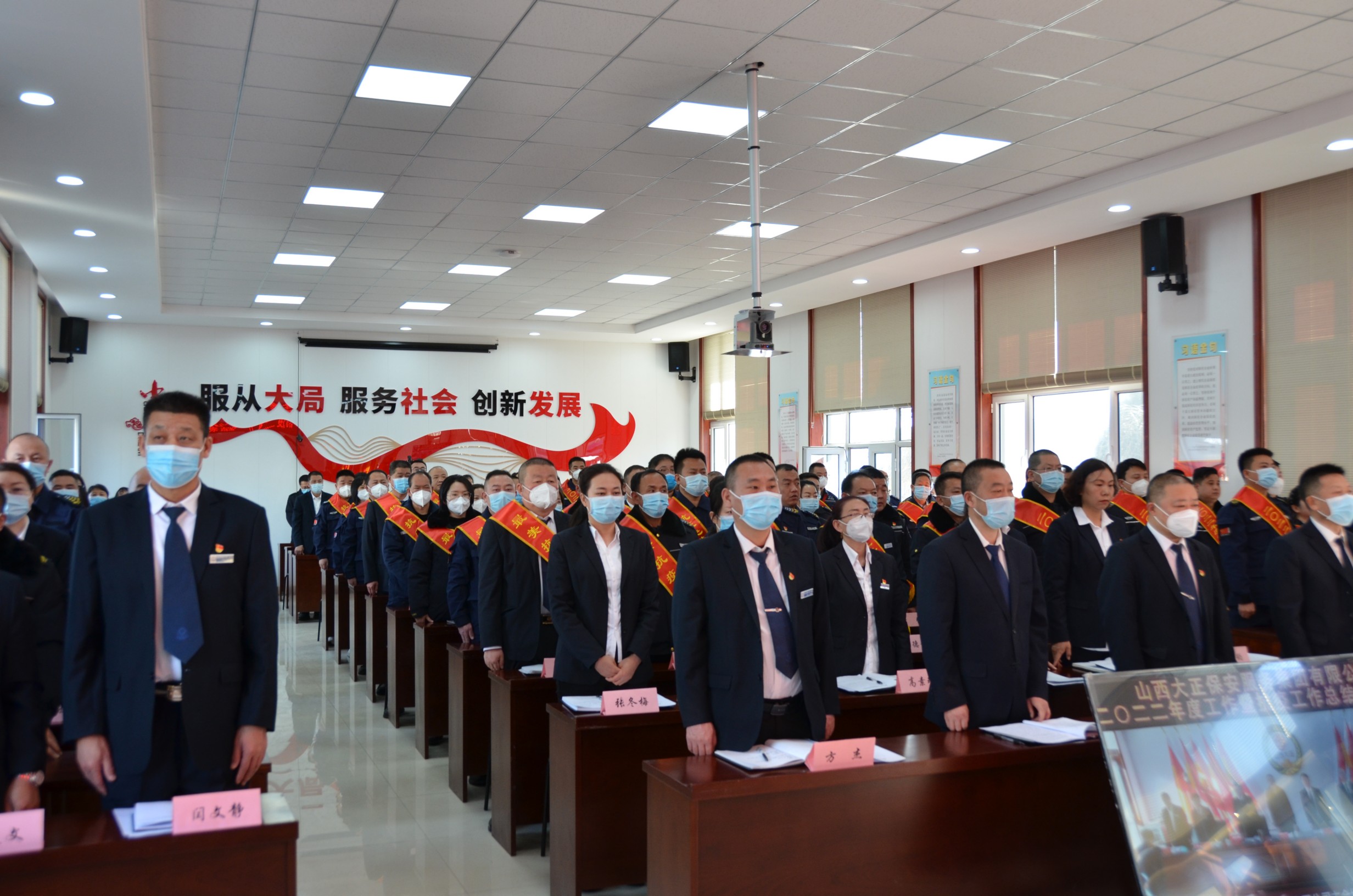 趙培宏在隨后的講話中指出:我們大正的英雄是奮戰(zhàn)在一線的戰(zhàn)士以及每一個奮斗的大正人。今天大會表彰的先進集體和個人都是員工隊伍中的優(yōu)秀代表。他們在各自的工作崗位用汗水澆灌收獲,用奮斗詮釋擔(dān)當(dāng),樹起了一面面爭先創(chuàng)優(yōu)的旗幟。2022年集團公司全體員工在公司黨委的領(lǐng)導(dǎo)下,搶抓機遇、迎難而上、共謀發(fā)展,取得了經(jīng)營業(yè)績和客戶滿意的雙重勝利。在攻堅克難中交出了一份優(yōu)異的成績單,營業(yè)總收入持續(xù)保持上升,2022年全年營業(yè)總收入18356萬元,實現(xiàn)利潤804萬元,實現(xiàn)稅金770萬元。對自主經(jīng)營條件成熟的2家子公司--山西大正億通保安安全技術(shù)有限公司、山西大正昇成刻章服務(wù)有限公司試行自主經(jīng)營、獨立核算,檔案管理中心、物流倉儲中心、與四川華飛合作培養(yǎng)航空專業(yè)人才等創(chuàng)新業(yè)務(wù)持續(xù)拓展,推動了山西大正集團行穩(wěn)致遠,基業(yè)長青。2022年我們擔(dān)當(dāng)國企使命,在抗疫攻堅中再建新功。面對忻府區(qū)多次突發(fā)疫情,公司成立工作領(lǐng)導(dǎo)小組,員工深入一線積極開展疫情防控工作,積極參與師院東校區(qū)隔離點疫情防控工作,山西大正人用雙手傳遞餐食、用肩膀扛起物資、用腳步丈量責(zé)任、用行動踐行初心。圓滿完成了每一項艱巨繁重的工作任務(wù),為決戰(zhàn)決勝疫情防控阻擊戰(zhàn)作出了重要貢獻,并得到了市政府的高度肯定和社會各界一致好評。