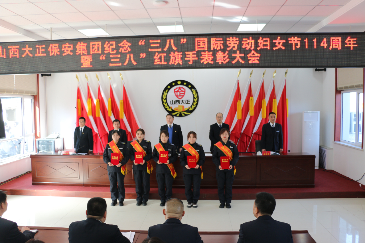 2024年3月8日上午,山西大正保安服務集團有限公司召開紀念“三八”國際勞動婦女節(jié)114周年暨“三八”紅旗手表彰大會,集團公司領導、“三八”紅旗手代表和機關、城區(qū)部分女員工共計80余人參會。會議由集團公司黨委委員、副總經(jīng)理王明生主持。