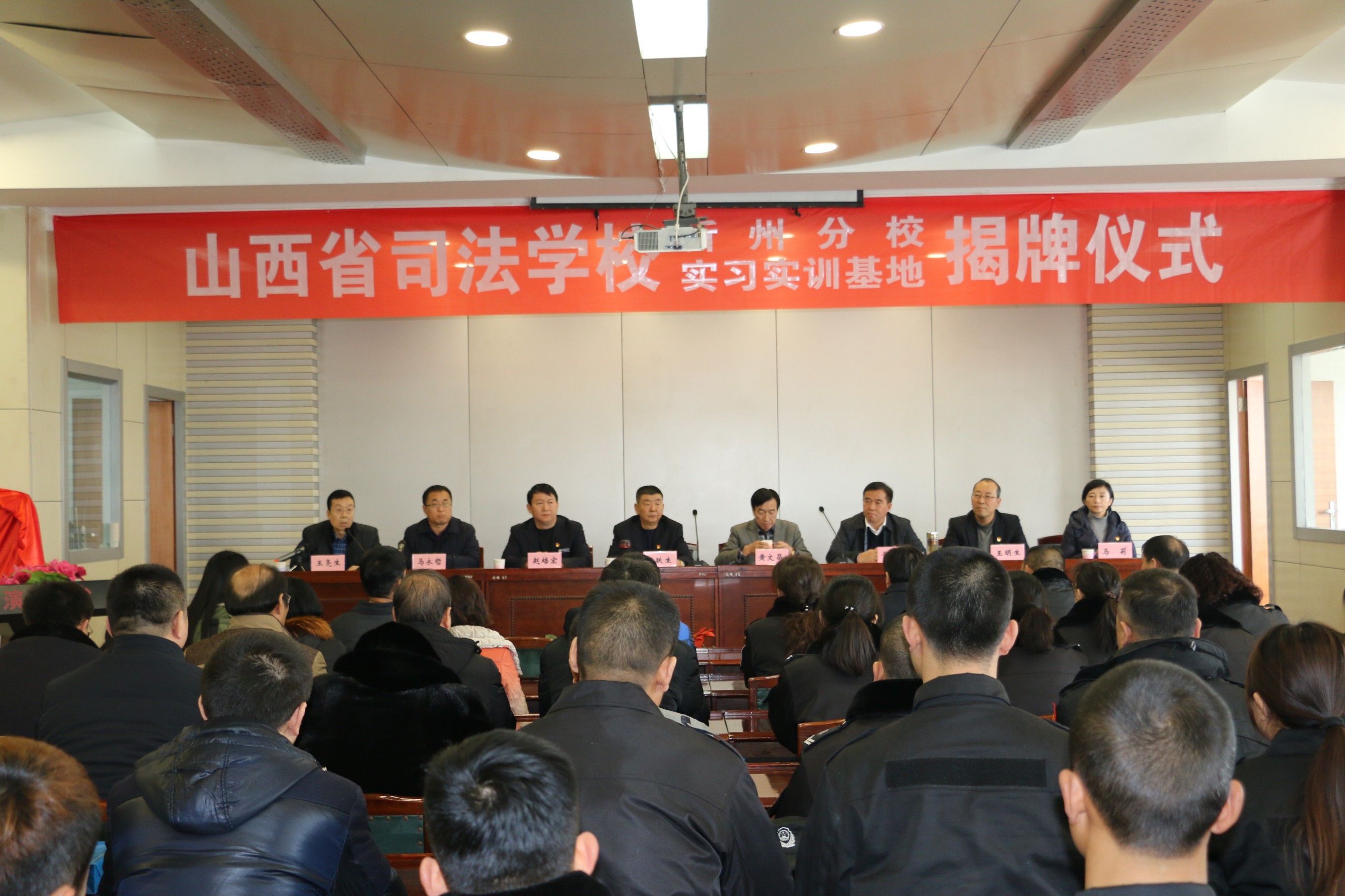 山西省司法學(xué)校忻州分校于2018年1月8日在我公司實(shí)訓(xùn)基地掛牌。公司總經(jīng)理張躍生、副總經(jīng)理趙培宏、王明生、總經(jīng)理助理羅鵬生、蔡車(chē)峰、高秀生、宋林兔等領(lǐng)導(dǎo)參加了掛牌儀式。