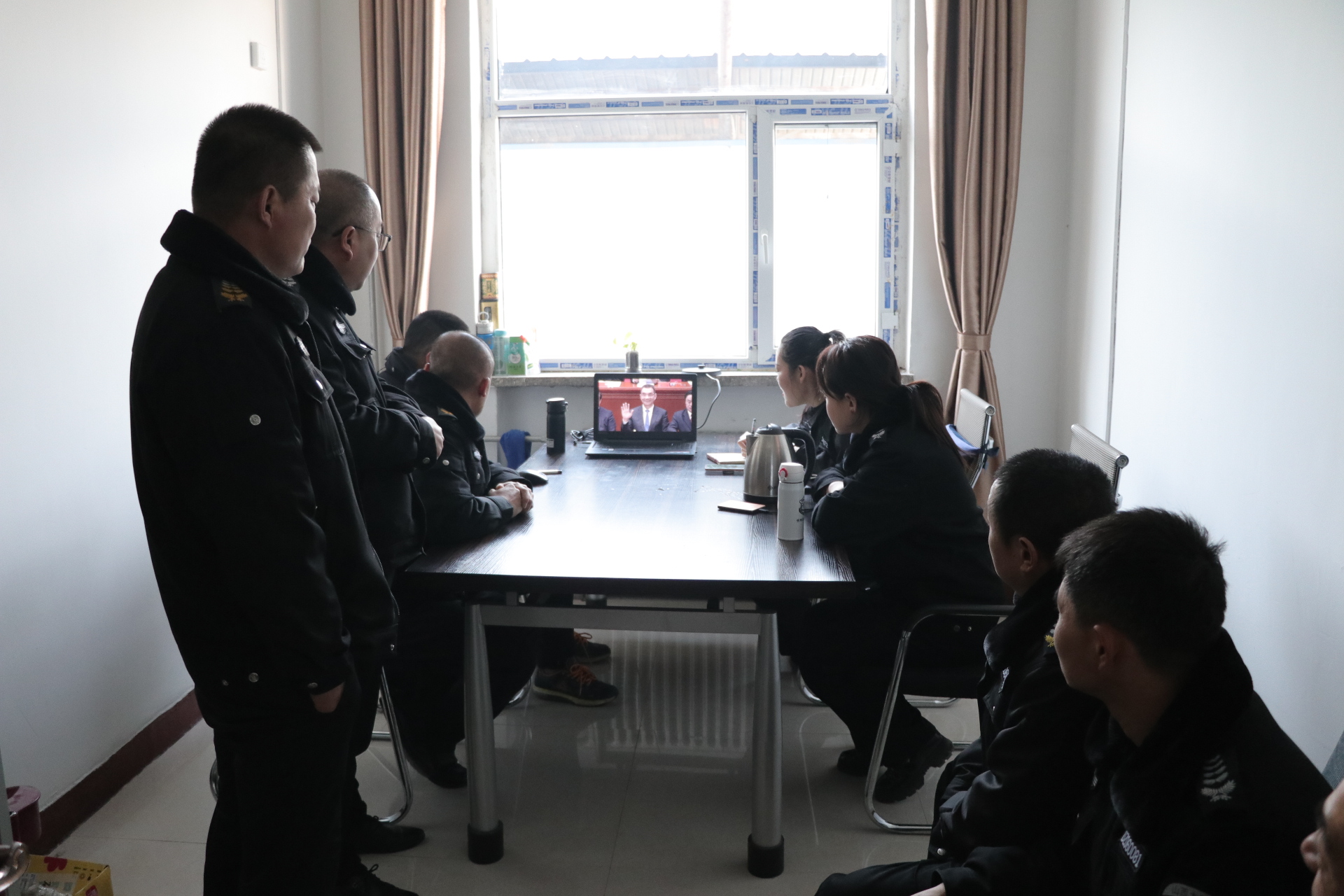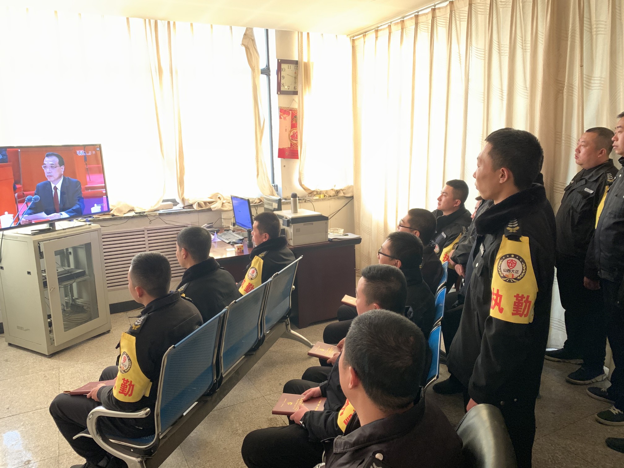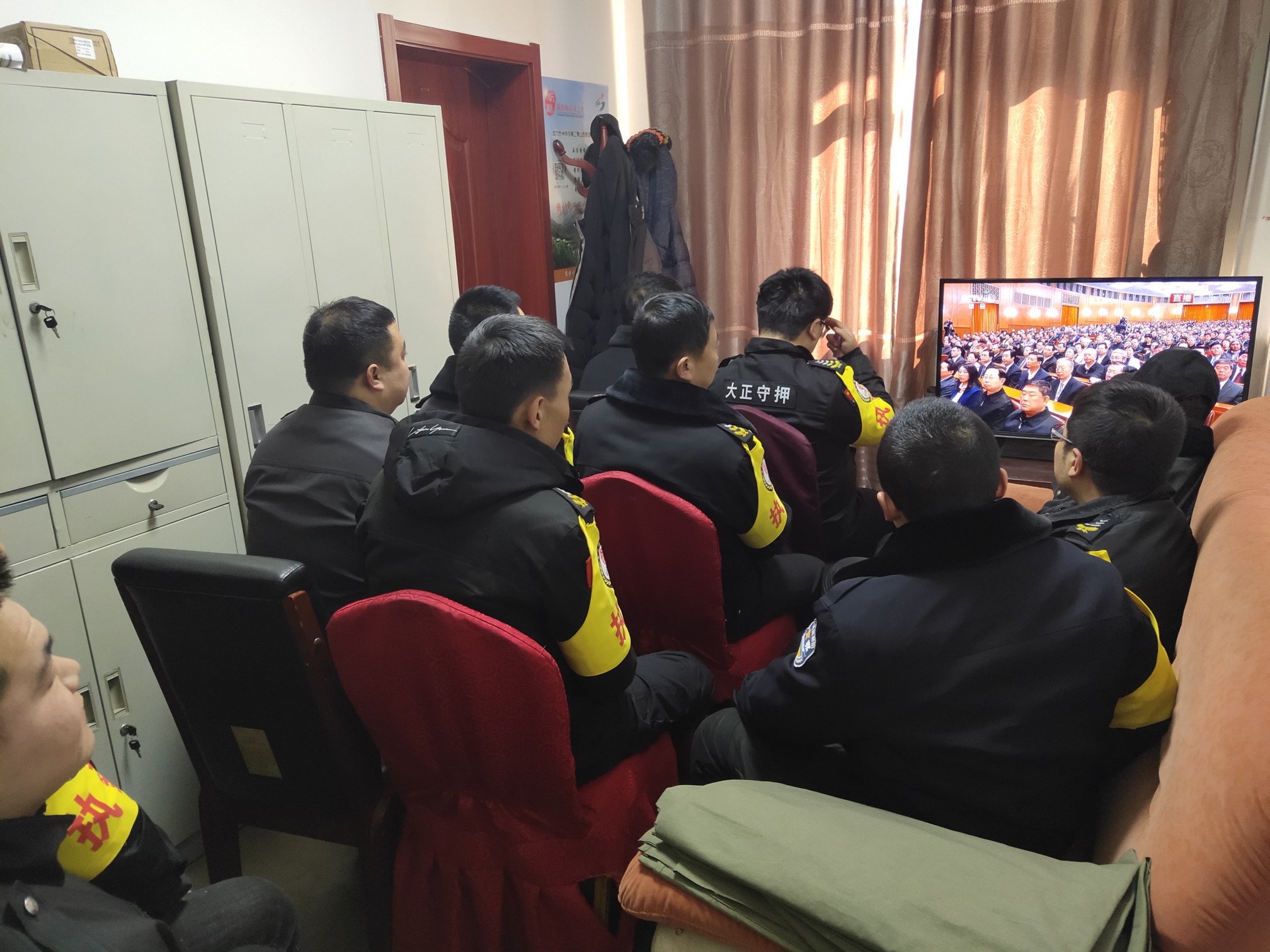 (守押靜樂中隊組織收聽、收看大會)