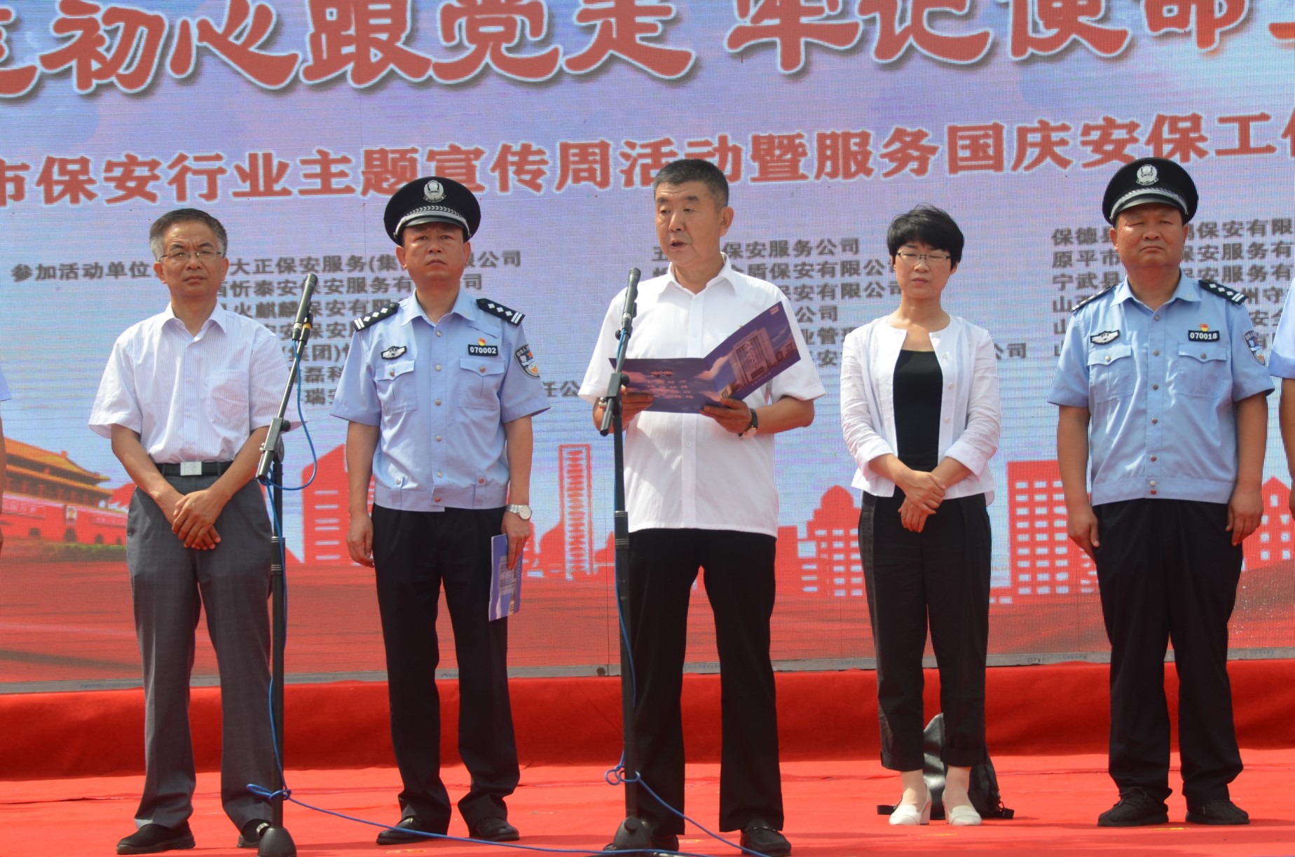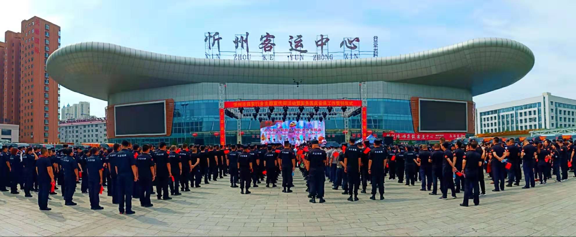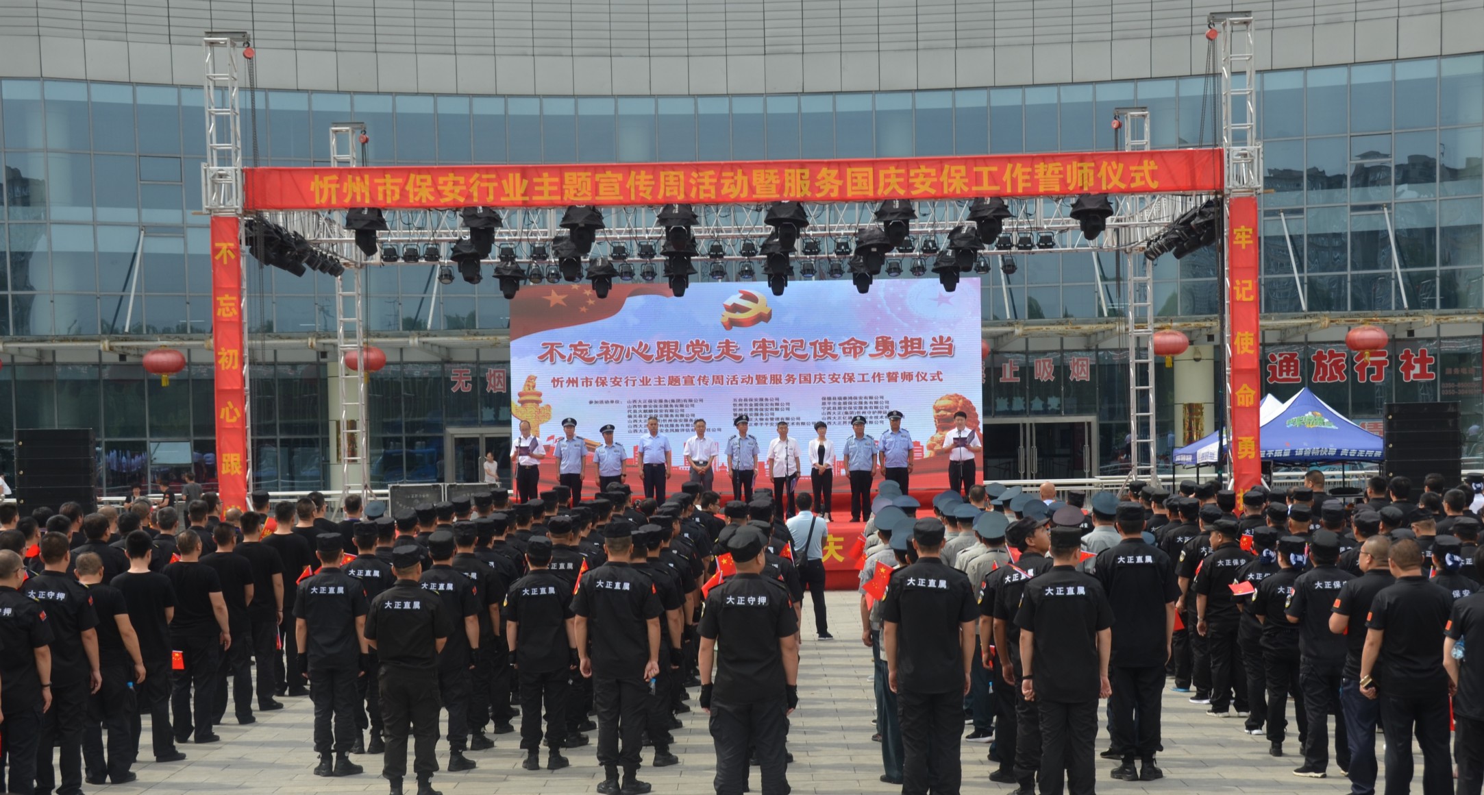 7月24日,忻州市公安局、忻州市保安協(xié)會(huì)會(huì)同山西大正保安服務(wù)有限公司、忻州市公安局直屬分局、忻州市公安局忻府分局及全市18家保安企業(yè)在忻州市客運(yùn)中心與全國(guó)各地同步舉行保安行業(yè)“不忘初心跟黨走、牢記使命勇?lián)?dāng)”主題宣傳周活動(dòng)暨服務(wù)國(guó)慶安保工作誓師儀式。