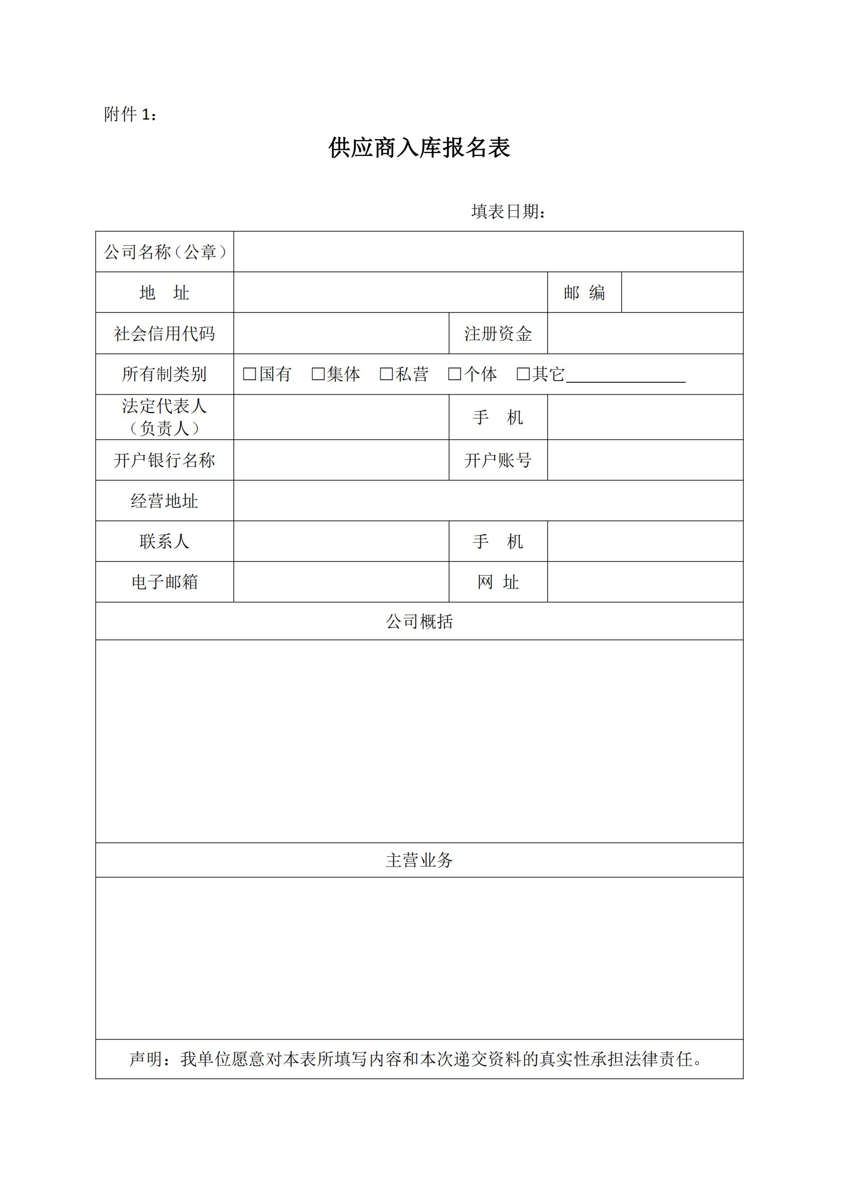 1、供應(yīng)商入庫(kù)報(bào)名表(見(jiàn)附件);