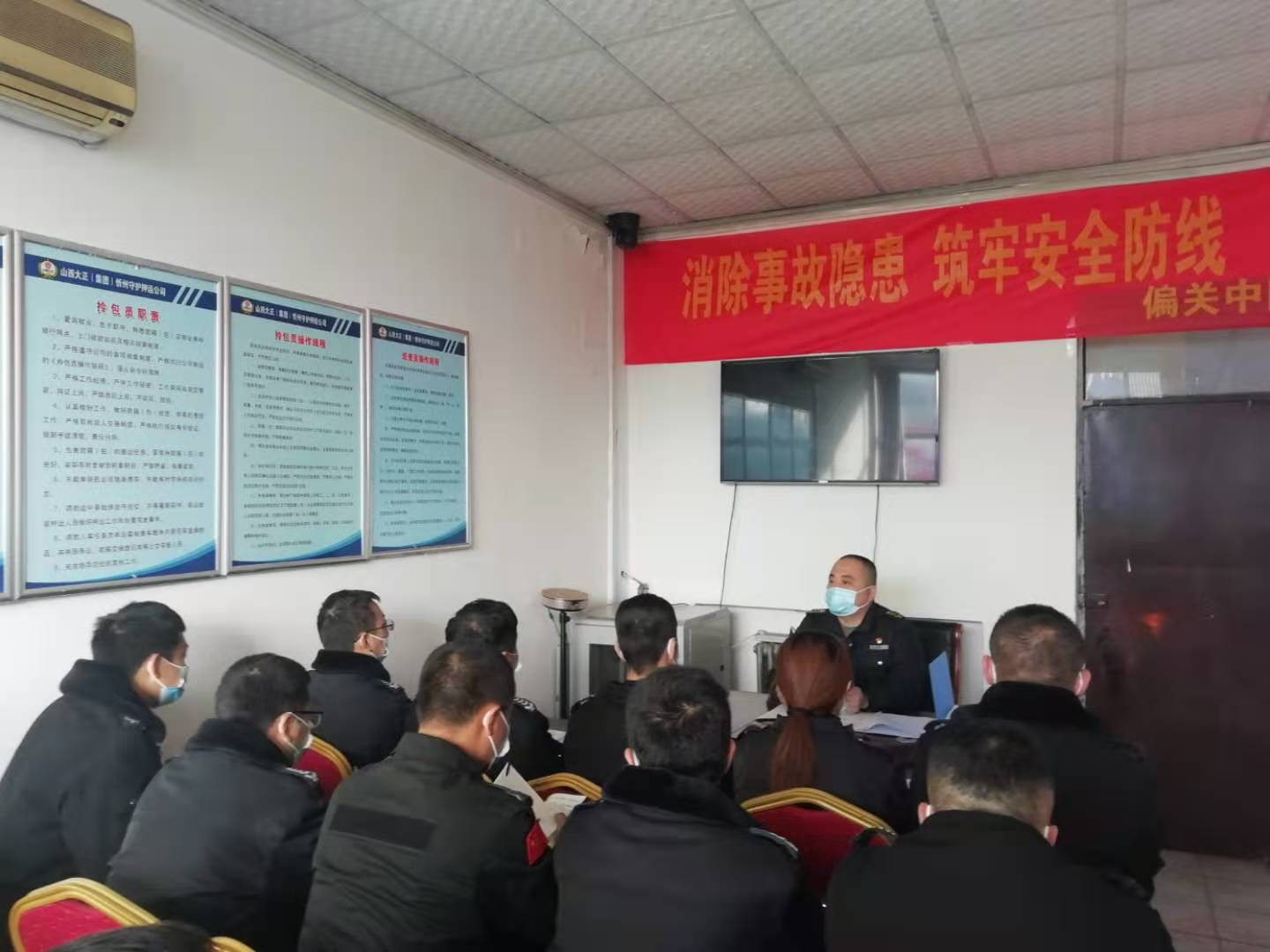 11月20日,接到關(guān)于下發(fā)《山西大正保安服務(wù)有限公司開(kāi)展紀(jì)律作風(fēng)集中整頓活動(dòng)實(shí)施方案》的通知,保德中隊(duì)當(dāng)晚對(duì)文件精神進(jìn)行了傳達(dá)與學(xué)習(xí),并就文件精神要求,中隊(duì)上下統(tǒng)一思想,充分認(rèn)識(shí)本次工作紀(jì)律作風(fēng)整頓活動(dòng)的重大意義。