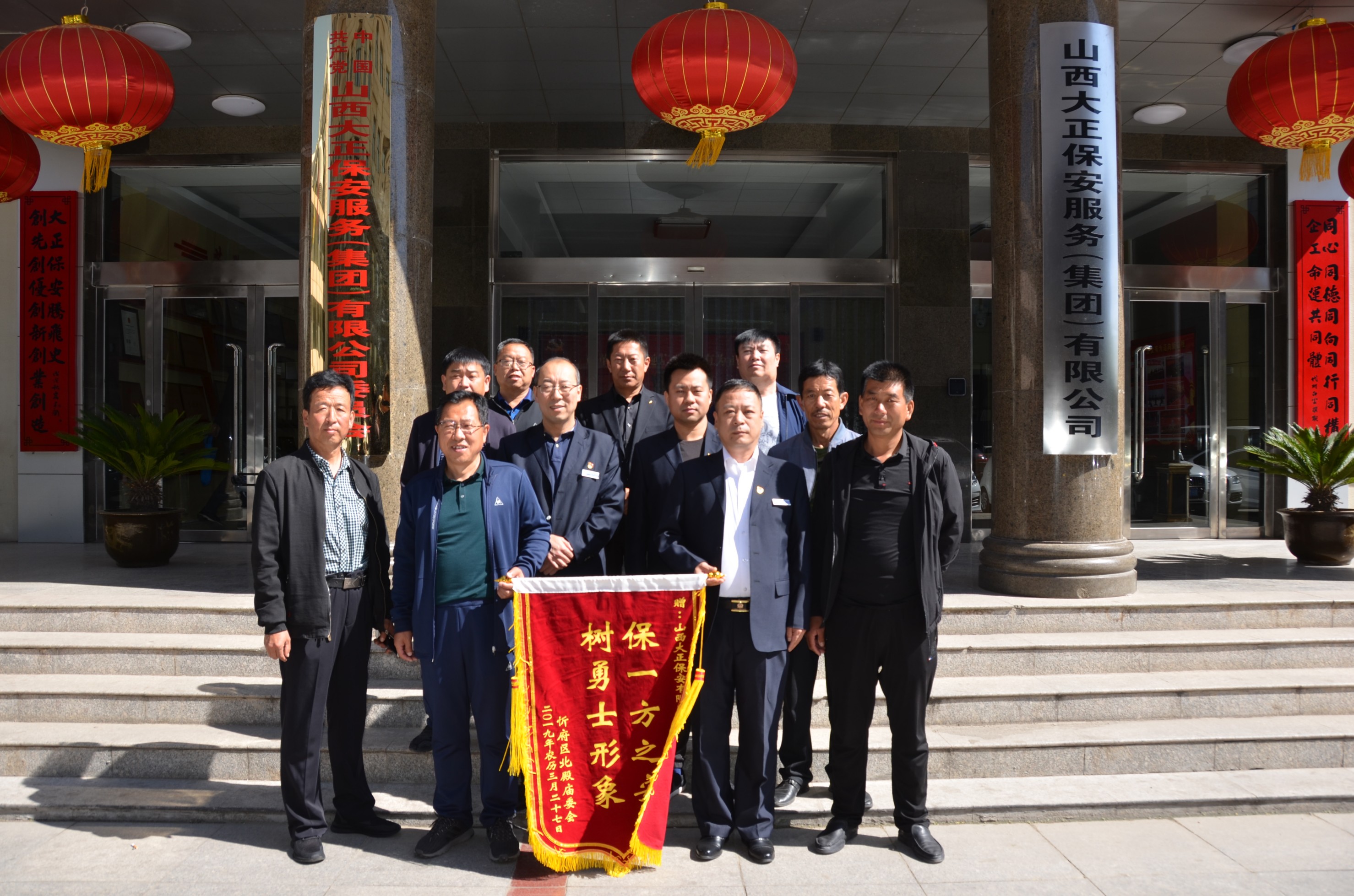 5月13日,廟會(huì)主辦方專(zhuān)程來(lái)到公司送來(lái)一幅寫(xiě)有“保一方之安,樹(shù)勇士形象”的錦旗,與張躍生、陳志平、趙培宏、王明生等公司領(lǐng)導(dǎo)進(jìn)行座談,對(duì)我公司圓滿完成北殿廟會(huì)安保勤務(wù)表示感謝,并就今后合作前景進(jìn)行深入探討。