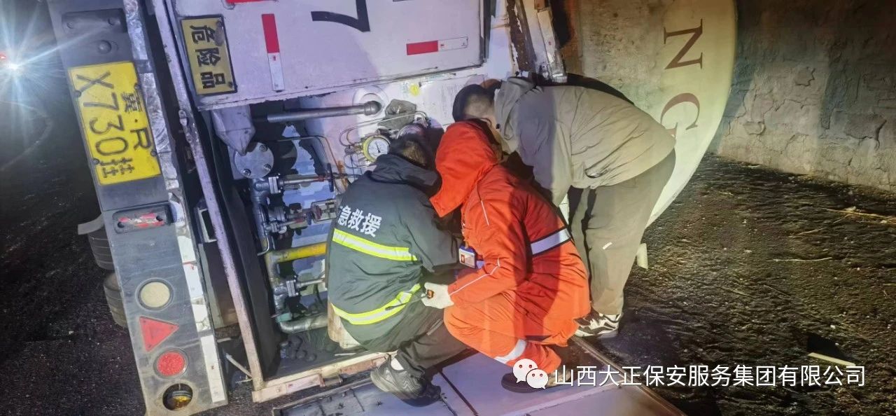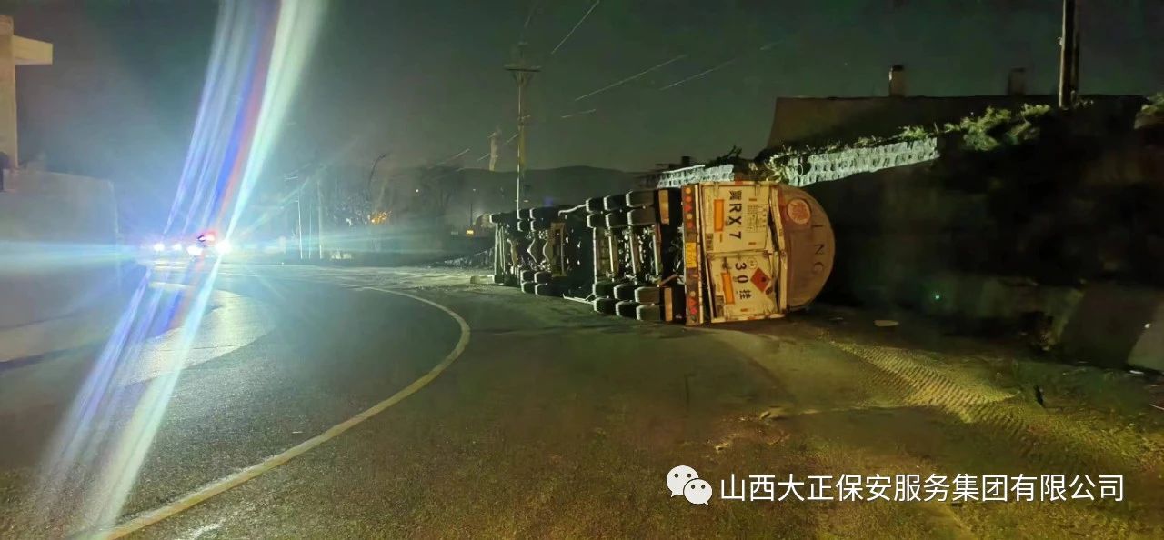 2023年11月23日晚8時,山西大正保安集團公司保德縣守押中隊應急救援大隊接到應急局出勤指令,棗林坡有滿載液化氣罐車發(fā)生側翻,需要派出應急人員控制現場,并協助處理側翻事故。應急救援大隊接到命令后,派出應急車輛兩部及應急人員5人趕赴現場,協助交警對現場路段進行管控,保證周圍車輛人員安全。