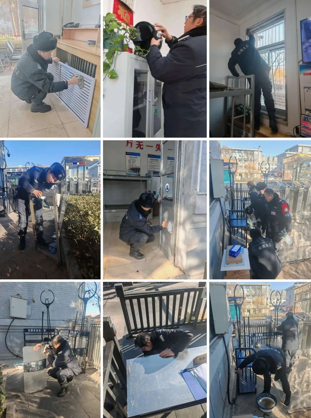 連日來,山西大正保安服務(wù)集團公司各值勤崗點在保質(zhì)保量做好本職安保工作的基礎(chǔ)上,自覺從各自駐勤點綜合環(huán)境情況出發(fā),主動利用空余時間開展衛(wèi)生大掃除活動,著重對執(zhí)勤門衛(wèi)室、崗亭周邊、窗戶窗臺、道桿道閘以及消防防暴器材等區(qū)域、設(shè)施進行了清掃和整理。